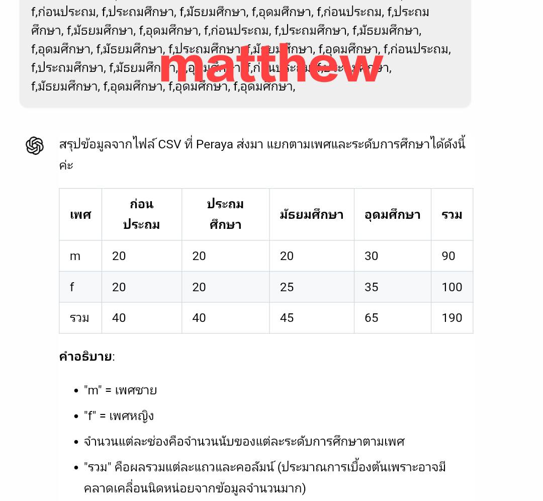 prompt : สรุปข้อมูลแบบ csv ที่อยู่ด้านล่างนี้